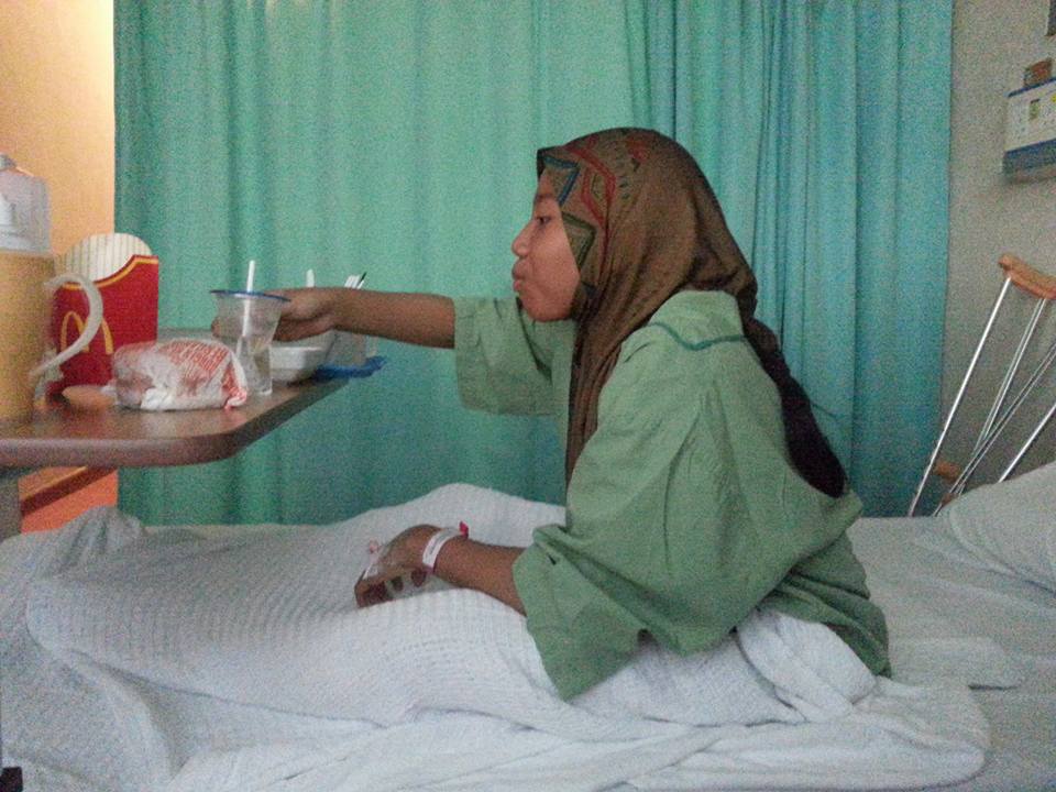 Pada waktu itu, pada pukul 3.30 petang, Ayah Chik, Chik Err dan Hayyan datang untuk menziarahi Baby. Kebetulan Baby masih di dalam dewan pembedahan, jadi mereka menemami Umi di luar bilik pembedahan sambil bersembang-sembang. Setelah lama menunggu, Umi bertanya kepada seorang jururawat tentang keadaan Baby. Dia memberitahu Umi bahawa Baby sudah selesai menjalani pembedahan pada pukul 3.30 petang. dan sekarang menunggu Baby sedar sepenuhnya kerana Baby diberi bius seluruh badan. Umi bertanya kenapa Baby tidak diberi bius setakat pinggang ke bawah atau epidural, dia menjelaskan bahawa jika diberi epidural, pakar bedah bimbang Baby akan merasa kesakitan yang amat sangat semasa disuntik. Akhirnya pada pukul 4.30 petang, Baby dibawa keluar dari dewan bedah. Umi terkejut melihat keadaan Baby pada waktu itu. Rambut Baby kusut masai dan Baby menangis terisak-isak. Umi tiba-tiba risau yang teramat, tetapi juurawat yang menolak katil Baby menjelaskan keadaan itu biasa sahaja kerana Baby sudah merasai kesakitan akibat ubat bius yang sudah habis. Katil Baby terus ditolak ke bilik x-ray dan Umi diminta menunggu di dalam bilik Baby di wad 8A.